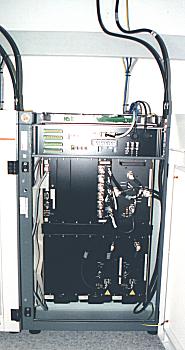 Mobilfunkinstallation vermuten? Eigentlich niemand, oder? Das Kirchengebäude der ev. Gemeinde in Palmbach bei Karlsruhe wurde kurz nach der Jahrhundertwende erbaut. Von aussen ist absolut nichts zu erkennen, von innen erkennt man die Sektorstrahler direkt hinter den Schallfenstern. Die verwendeten 3 ALCATEL-BTSen sind noch nicht einmal abgeschlossen. |