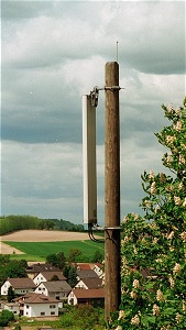 D1-Zelle an einem Holzmast angebracht. Sehr elegant gelöst, wie